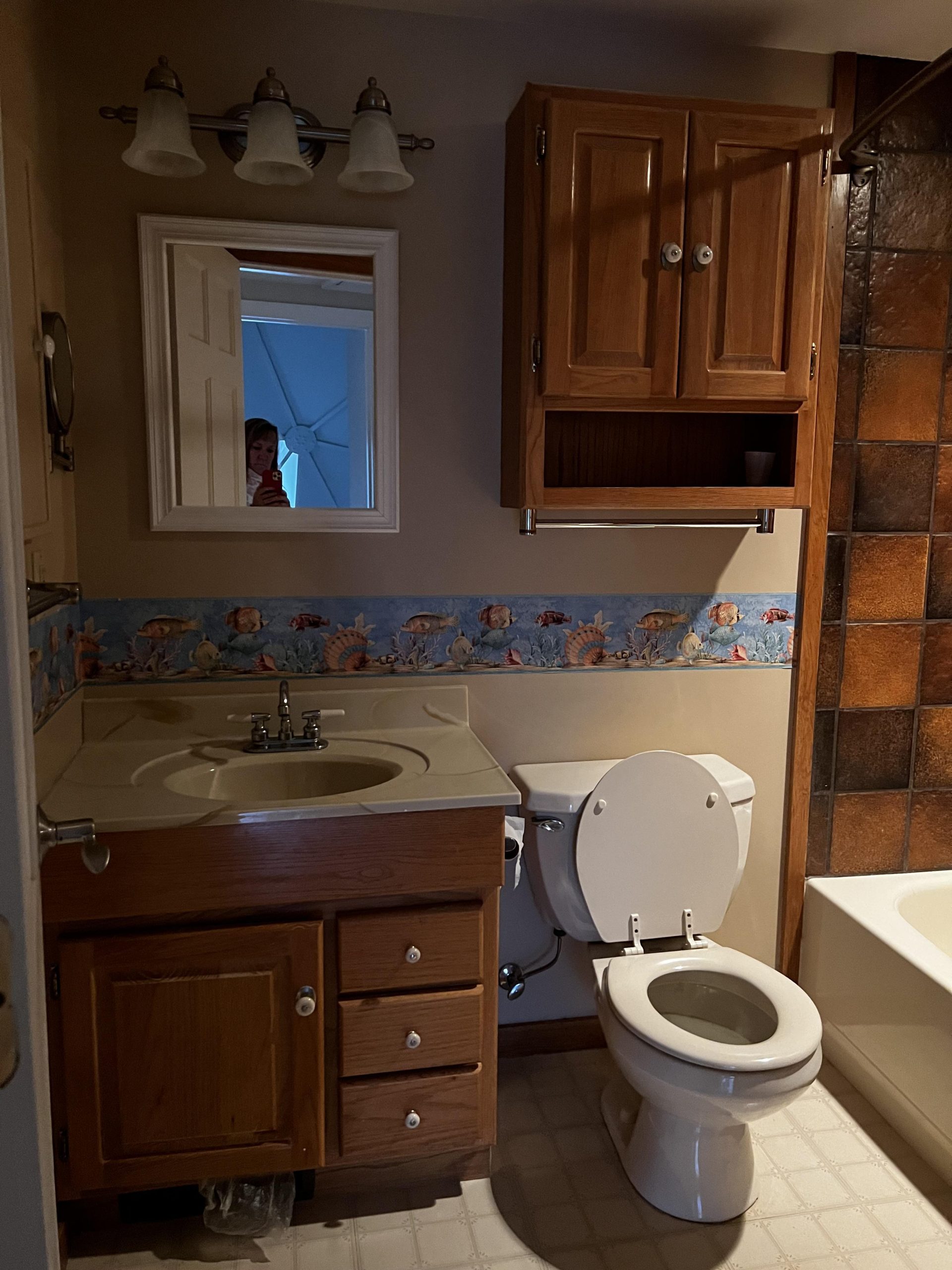 (Full guest bathroom, we’ll discuss that tub tile later!)